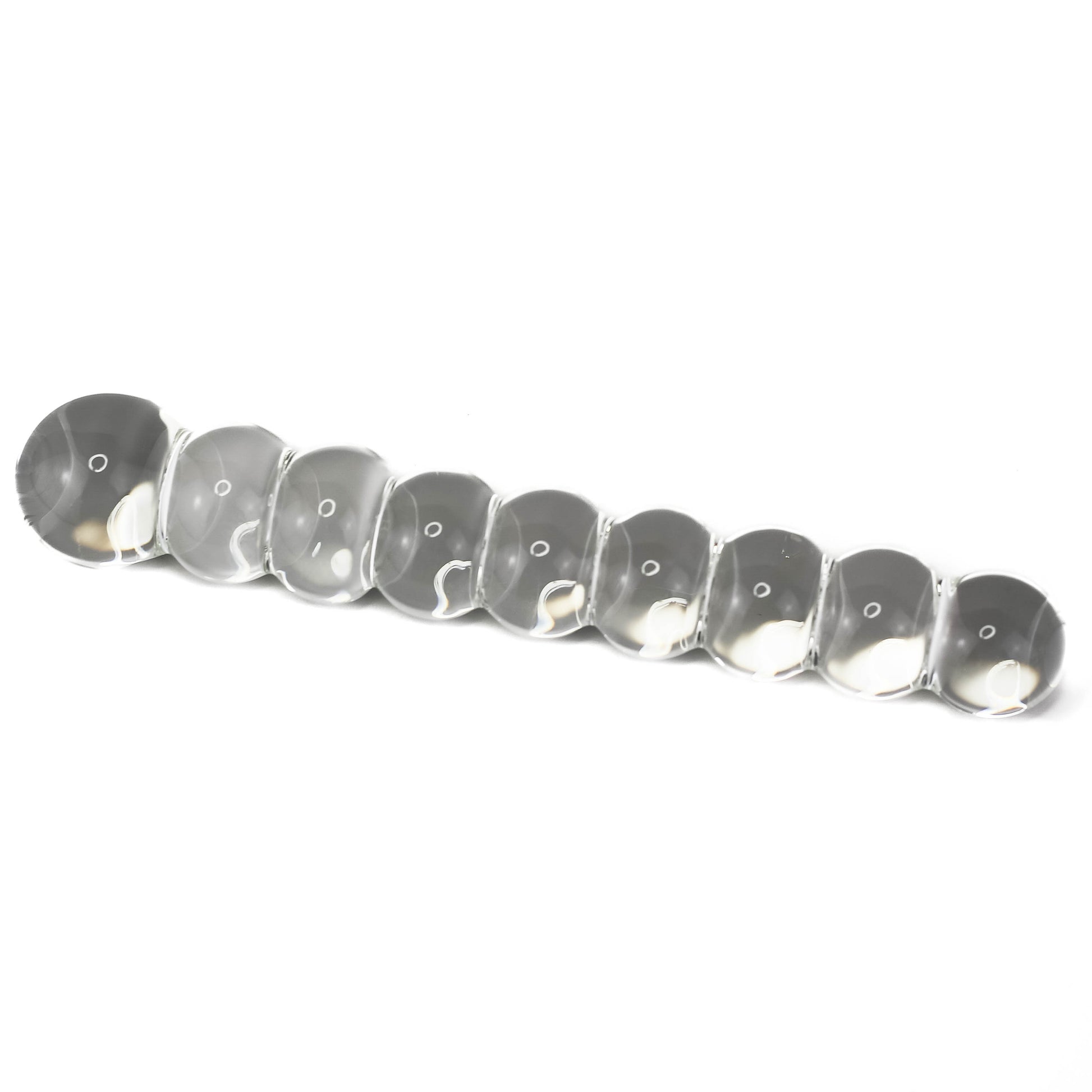 Glass anal beads. The Beaded Glass Dildo can be used as a masturbator or a butt plug, making it a dynamic addition to your toy collection.